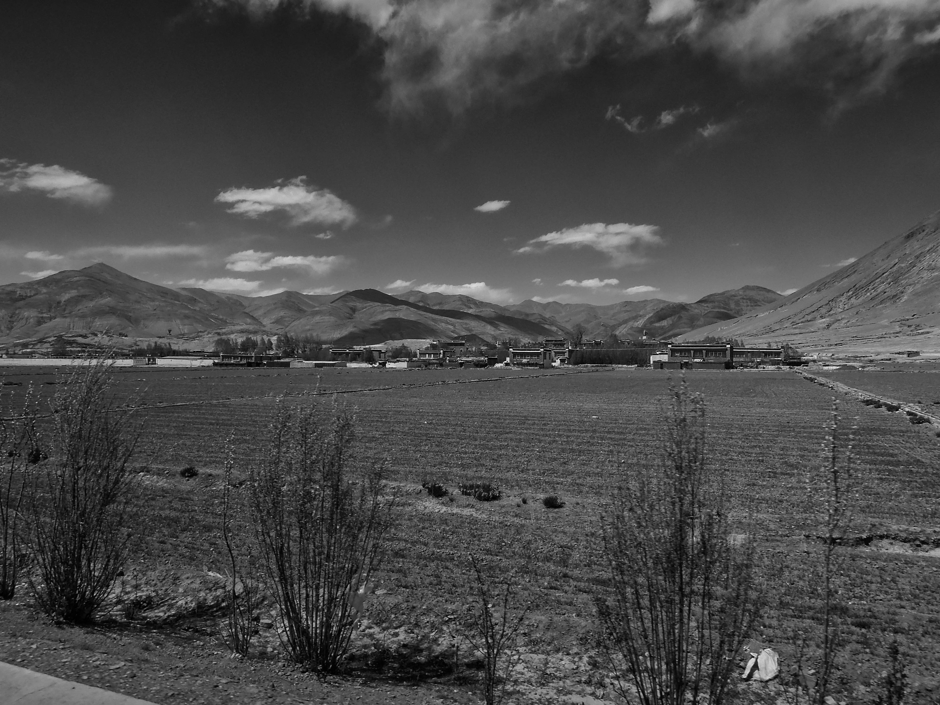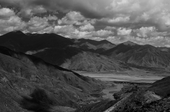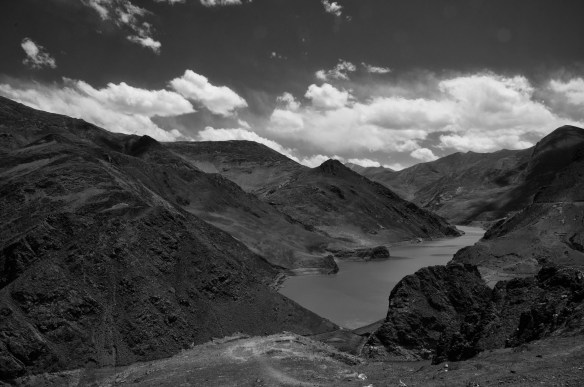 We drove 1,436 km (892 miles) from Lhasa to the small town of Darchen at the base of Mt. Kailash. This was not the shortest route, but it was the route we took. We drove for four days. The first day we drove south out of Lhasa to Shigatze. Just outside of Lhasa we crossed the Brahmaputra or Tsangpo-Brahmaputra River. It originates in Southwestern Tibet, cuts south through the Himalayas, runs through India and Bangladesh before flowing into the Bay of Bengal. This high up it was quite a small river, not too impressive. But this was also early in the season. By August it swells to several times this size due to the monsoon rains.