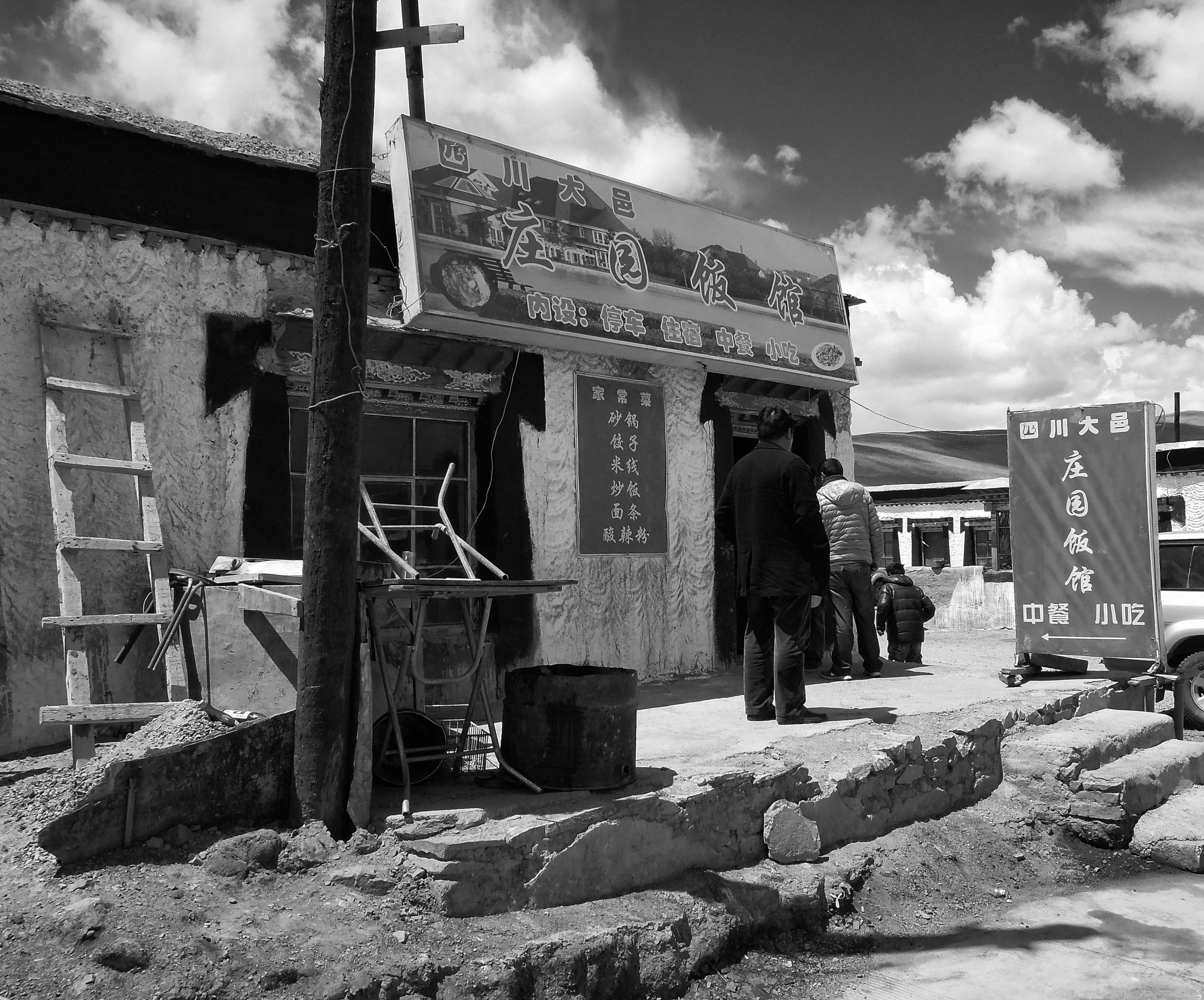 The first night we stayed in a hotel; the second night in a Tibetan guesthouse, and the rest of the time we camped out in tents. We would find a meadow on the outskirts of a small town and set up camp. Our party of seven had two Toyota Landcruisers, with two Tibetan drivers and our Tibetan guide.