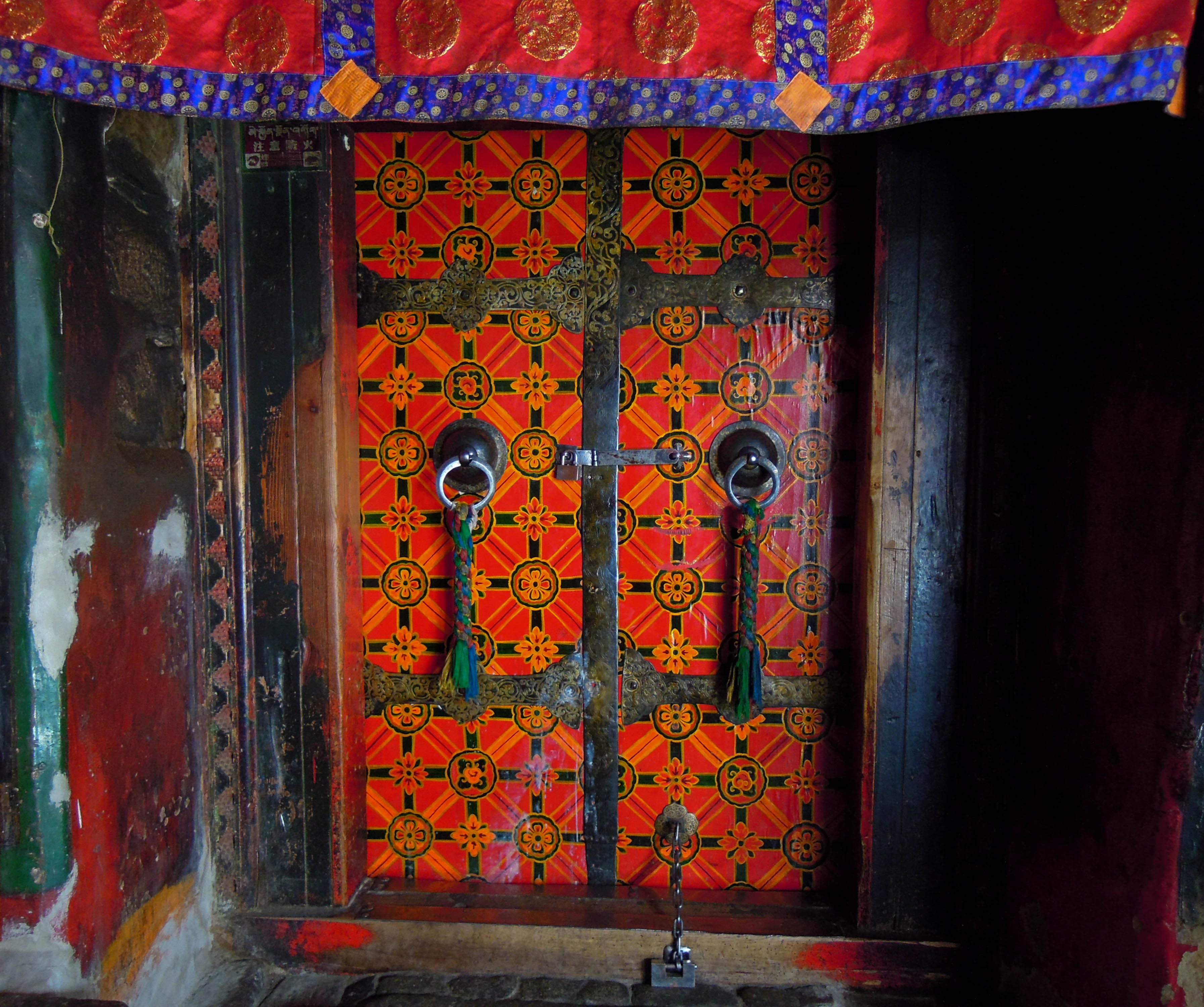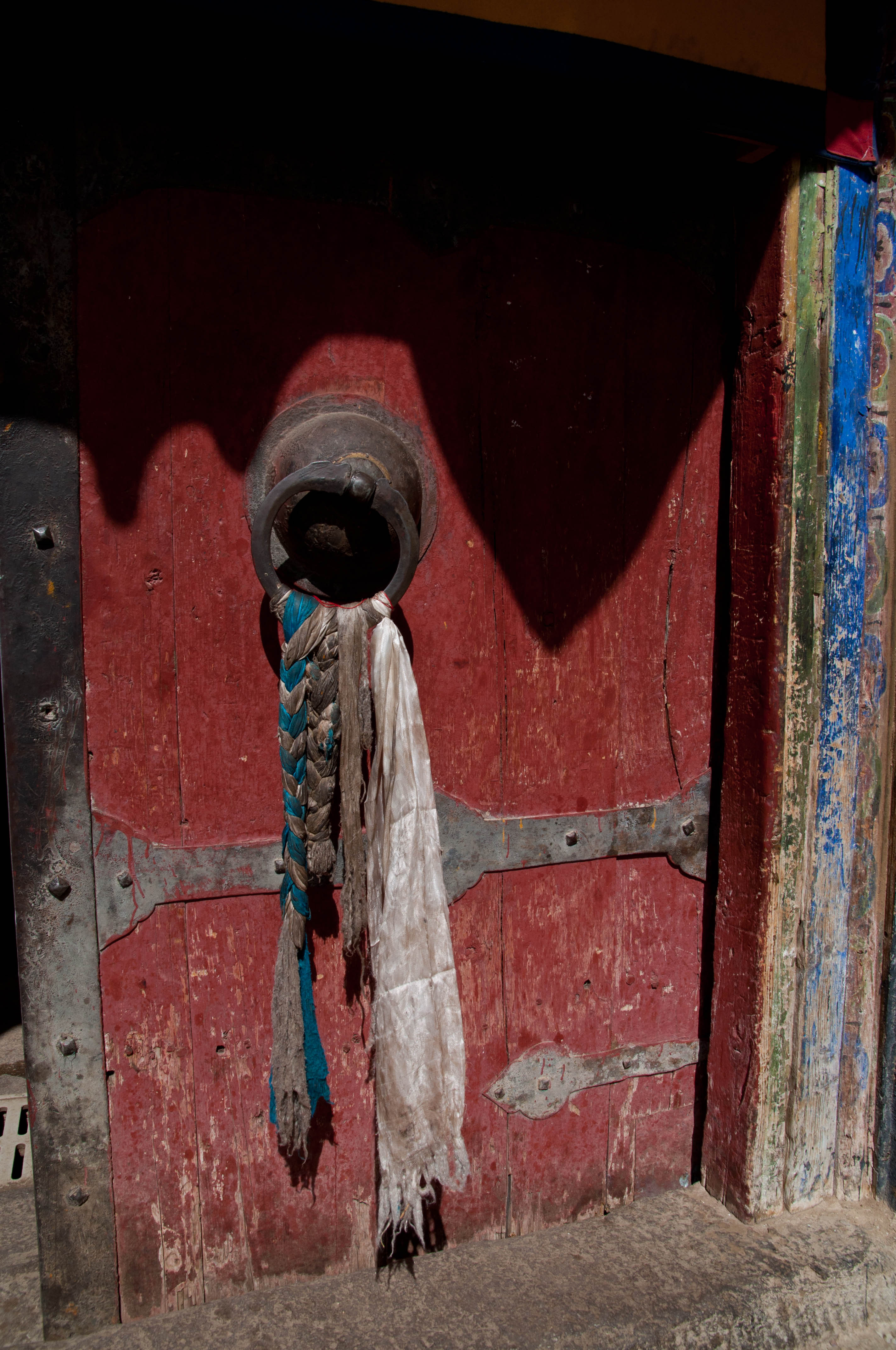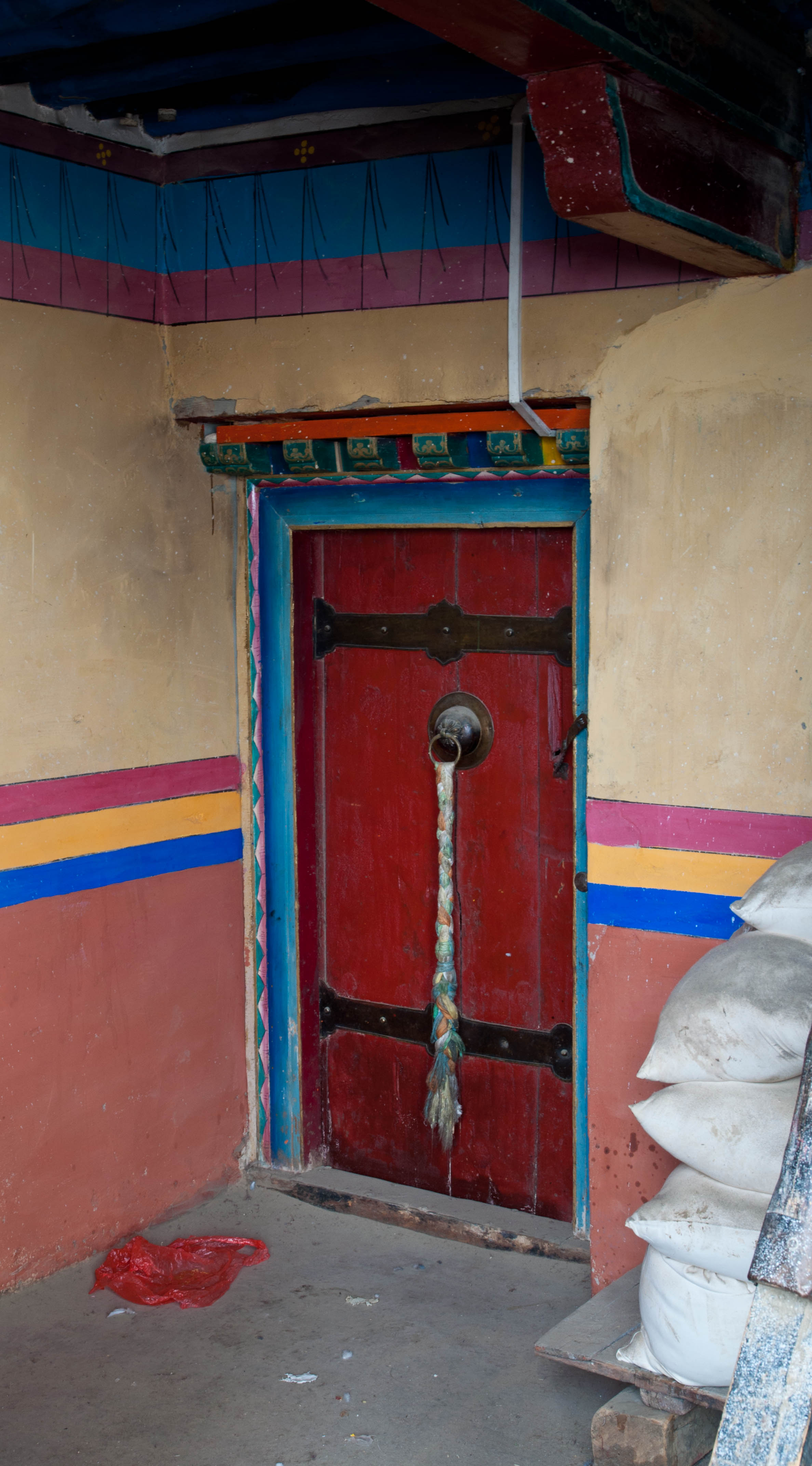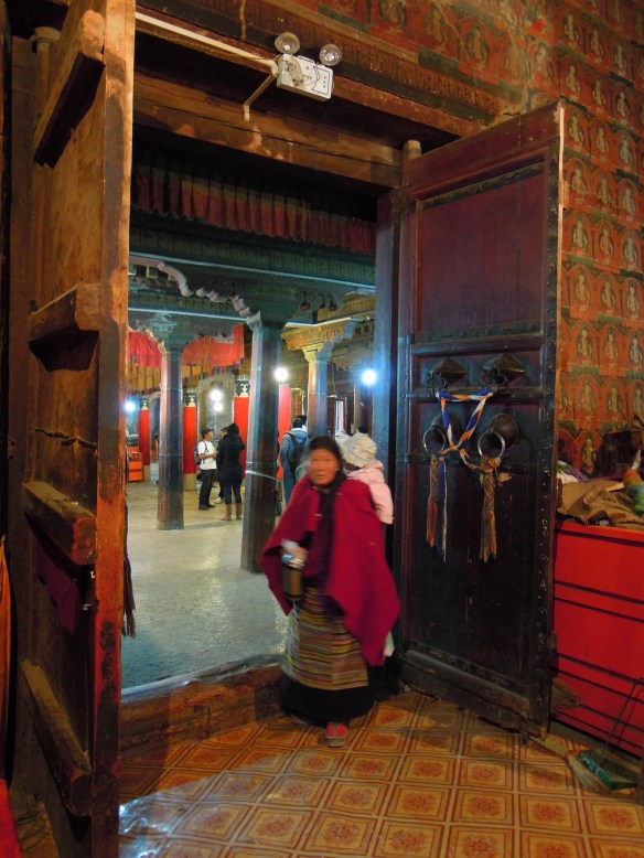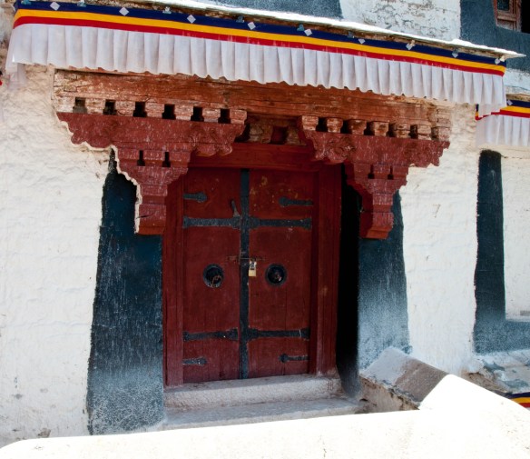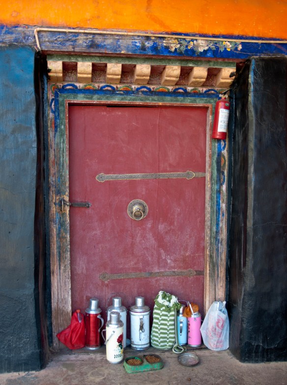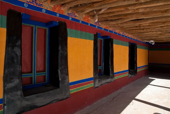 We drove high into the mountains crossing three high passes, the highest of which was 16,500′. Tall heavily glaciated peaks, probably around 20,000′ high soared above the highway in places. On the way to Shigatse we stopped in the town of Gyantse and visited the Pachu Monastery, built in 1418. In Shigatse we visited the Tashi Lhunpo Monastery. The next day we drove from Shigatze to Lhatse. The third day we drove to Sakya, then camped outside Saga. and the fourth day we drove to Lake Manasarovar and camped along its shores. On the fifth day we drove a short distance (about an hour) to the town of Darchen where we began our kora, or circumambulation around Mt. Kailash.