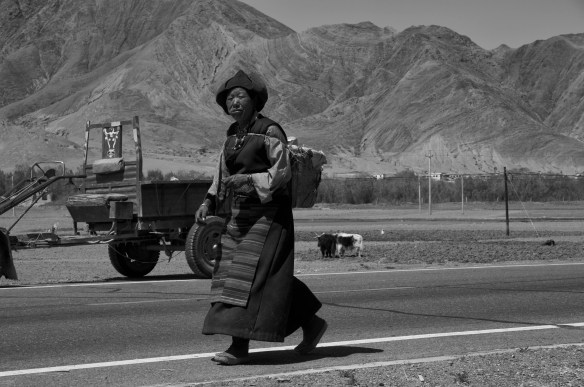 Though Tibet is a bleak and barren land, it was stunning. We passed countless mountains, long straight highway, winding switchbacked highway, high mountain passes, lakes, dozens of small towns, truck stops, nomad camps, lush green meadows, herds of yaks, fields of barley and some wildlife. Below are my memories of this wild and lonely land. Click on the photos to enlarge them.