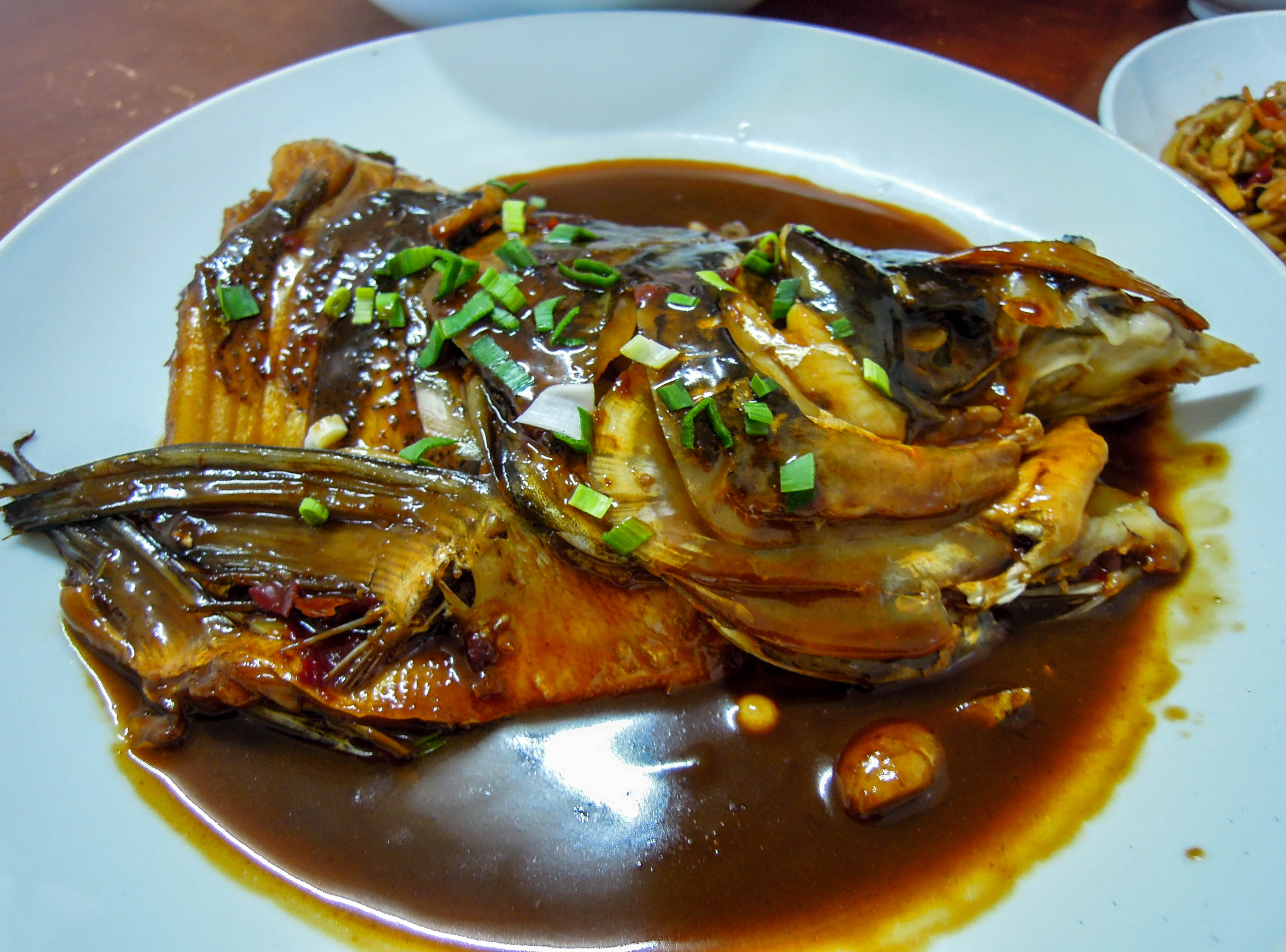 I know what many of you are thinking, fish head??? Trust me, it is delicious. The most tender and delicious meat from a fish comes from the cheek area, and the area just below the gills. Have you ever had halibut cheeks? I ate them once at a seafood restaurant in Seattle and they were to die for. This fish dish was exceptionally fresh, with a delicate sweet and slightly sour sauce with a few chopped scallions sprinkled on top. It was really good.