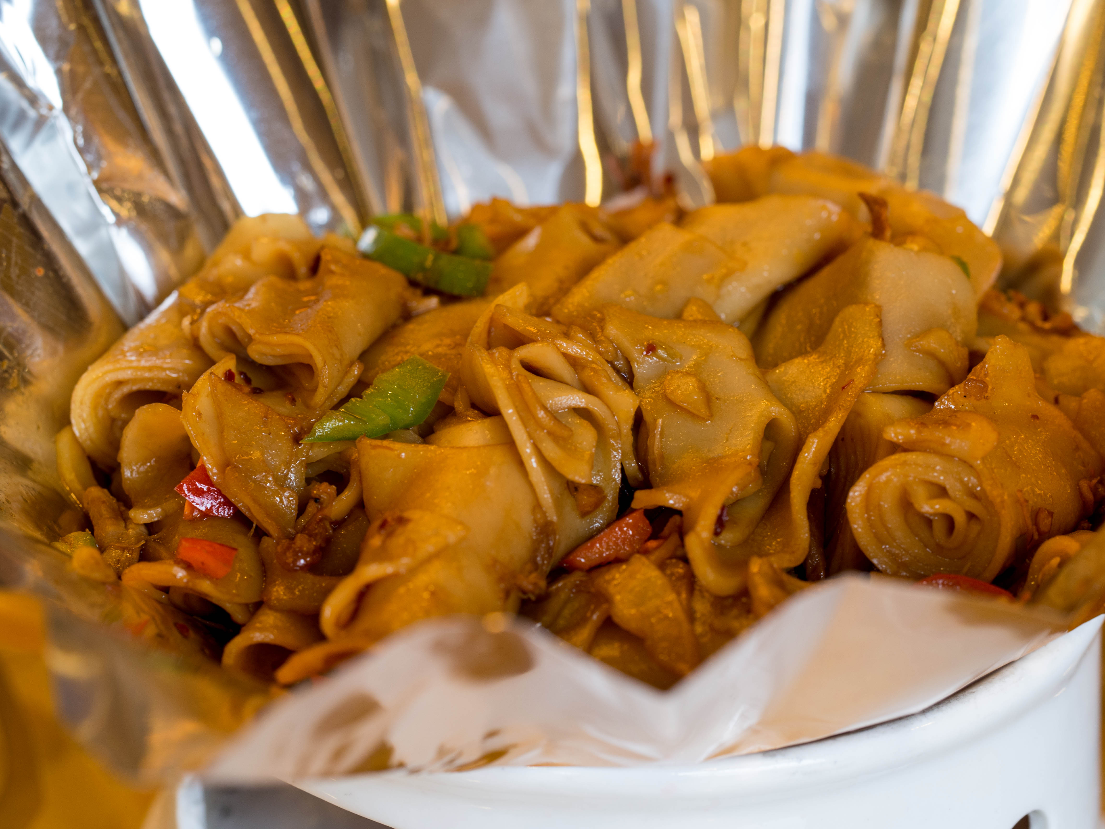 甜不辣 tiánbúlà; transliteration of the Japanese tempura—it is fish paste formed into various shapes, then boiled in a broth and topped with a miso gravy.