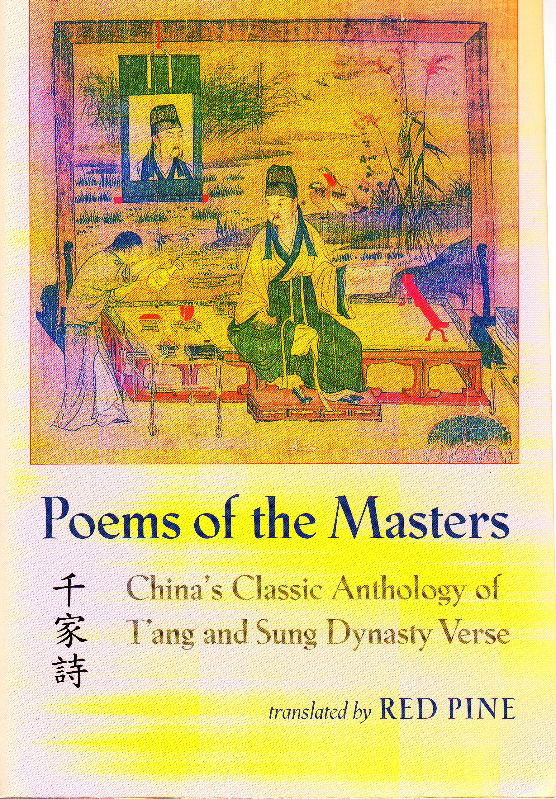 penguin poetryI also want to mention the translator Red Pine. This is the pen name of Bill Porter who has spent his life translating Chinese poetry and Buddhist classics. One thing I really like about his translations is that he always includes the original Chinese and does an excellent job of contextualizing the poems providing background information about the poets, the historical context, and the situation in which the poet wrote the poem. I like this kind of contextualization. He is one of the few translators who has translated all the known poems of the Tang Dynasty poet known as Cold Mountain. Perhaps his other most important work of Chinese poetry is his translation of  Poems of the Masters (千家詩 qiān jiā shī). This is an important anthology first published at the end of the Song Dynasty.