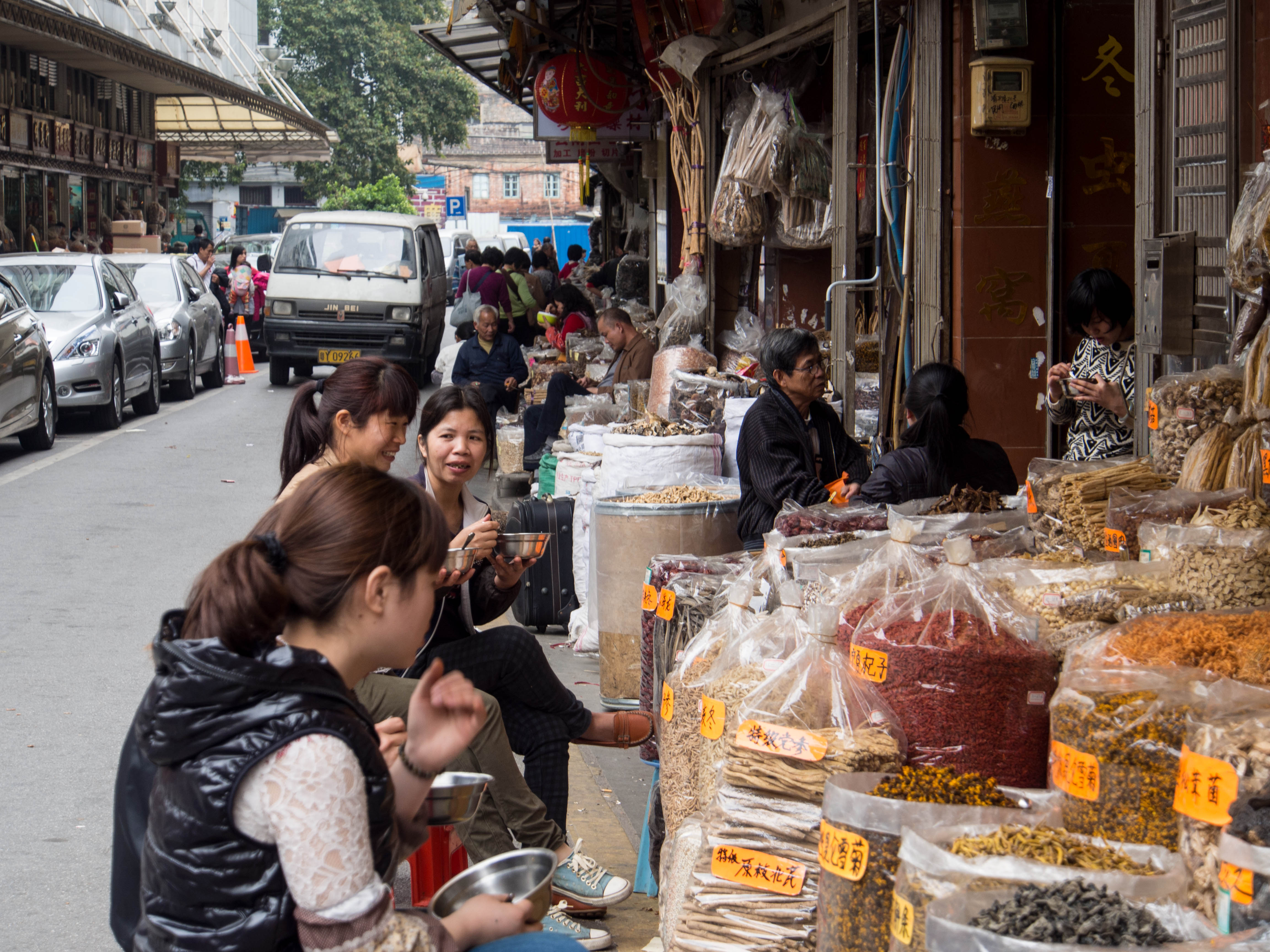 The Cantonese are passionate about two things—eating and shopping, and it is evident everywhere in Guangzhou. If they are not eating, they are talking about eating, at the market shopping for ingredients, or at the least thinking about food. Cantonese cuisine is one of the four major cuisines in China with a long and rich history. Restaurants, meat and produce markets, and street vendors are everywhere and it seems the Cantonese are eating at all times of the day and late into the night.