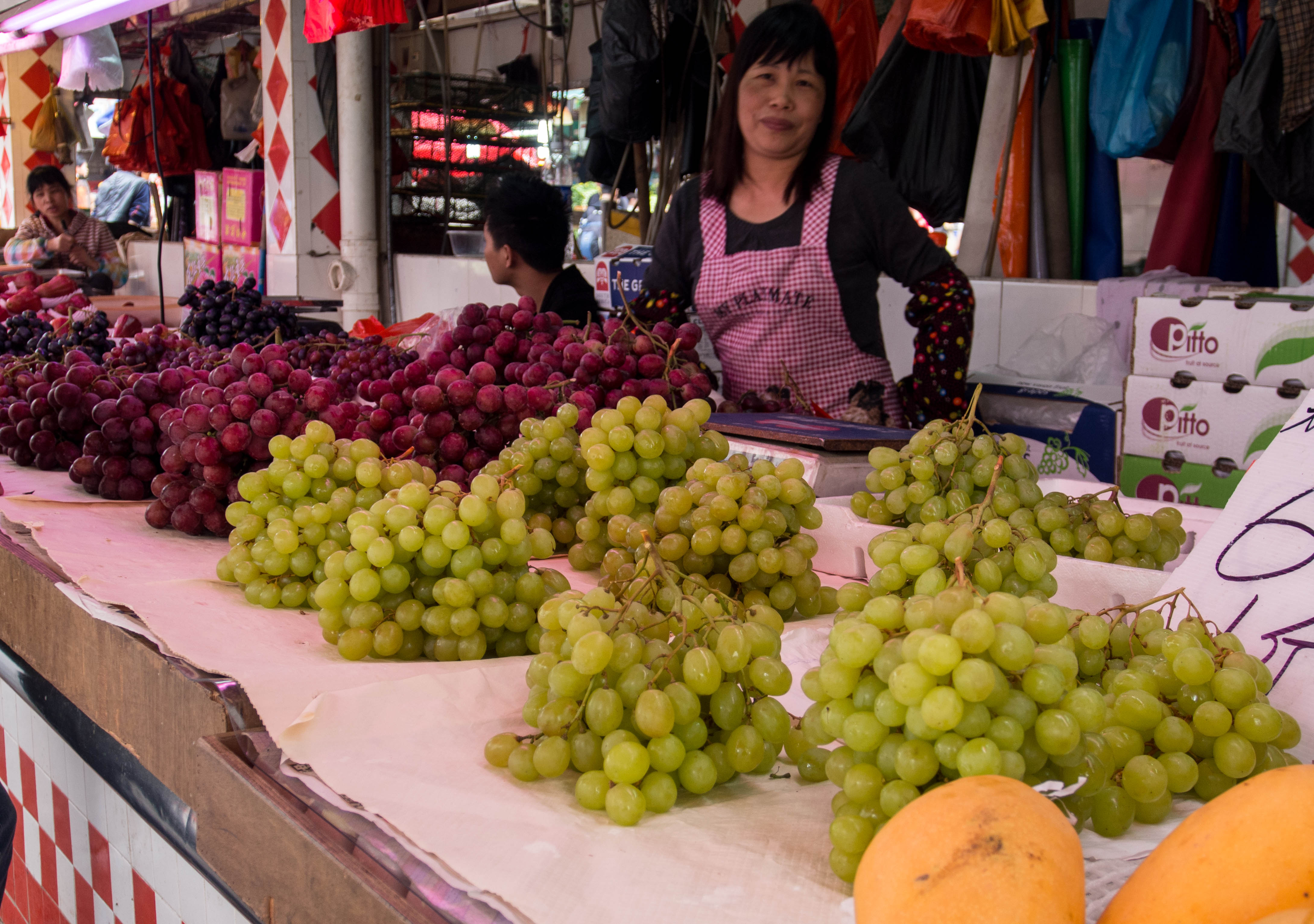 Though there are now large grocery stores all over China, the Cantonese still do a fair amount of shopping in outdoor meat, poultry, and produce markets. They are similar to farmer’s markets here in the U.S. Just a couple decades ago all Chinese shopped this way. At that time most Chinese did not own refrigerators and shopped every day for produce. This habit is still practiced by many Chinese who insist on the freshest ingredients. In the past, it was not uncommon for someone to buy a live chicken, take it home, and let it strut around in the kitchen until time to prepare the meal. Live fish are also bought and either taken home alive, or prepared by the vendor on the spot. These kinds of markets are still around in China though they are a bit harder to find and the Chinese are shopping more and more in grocery stores.