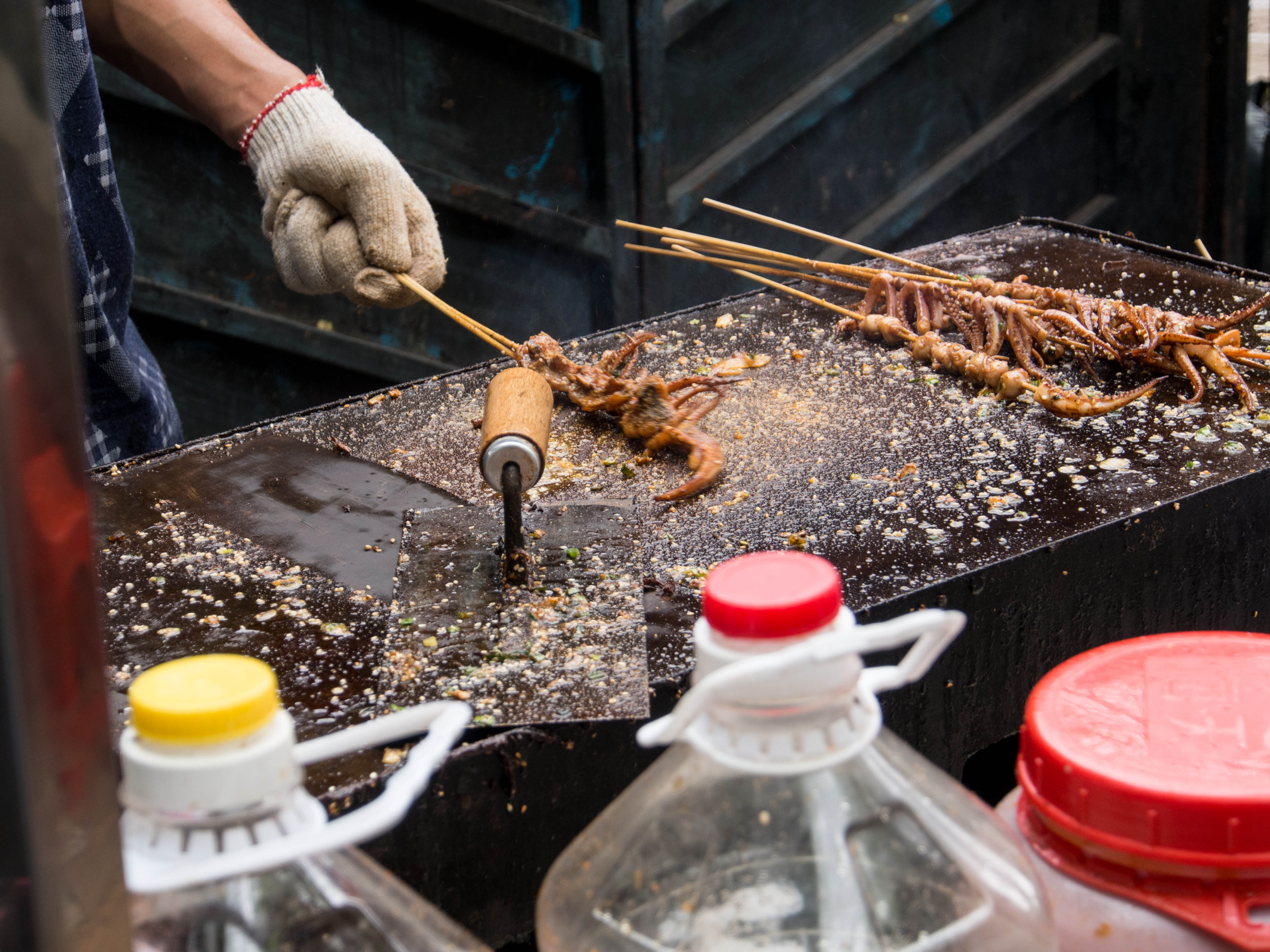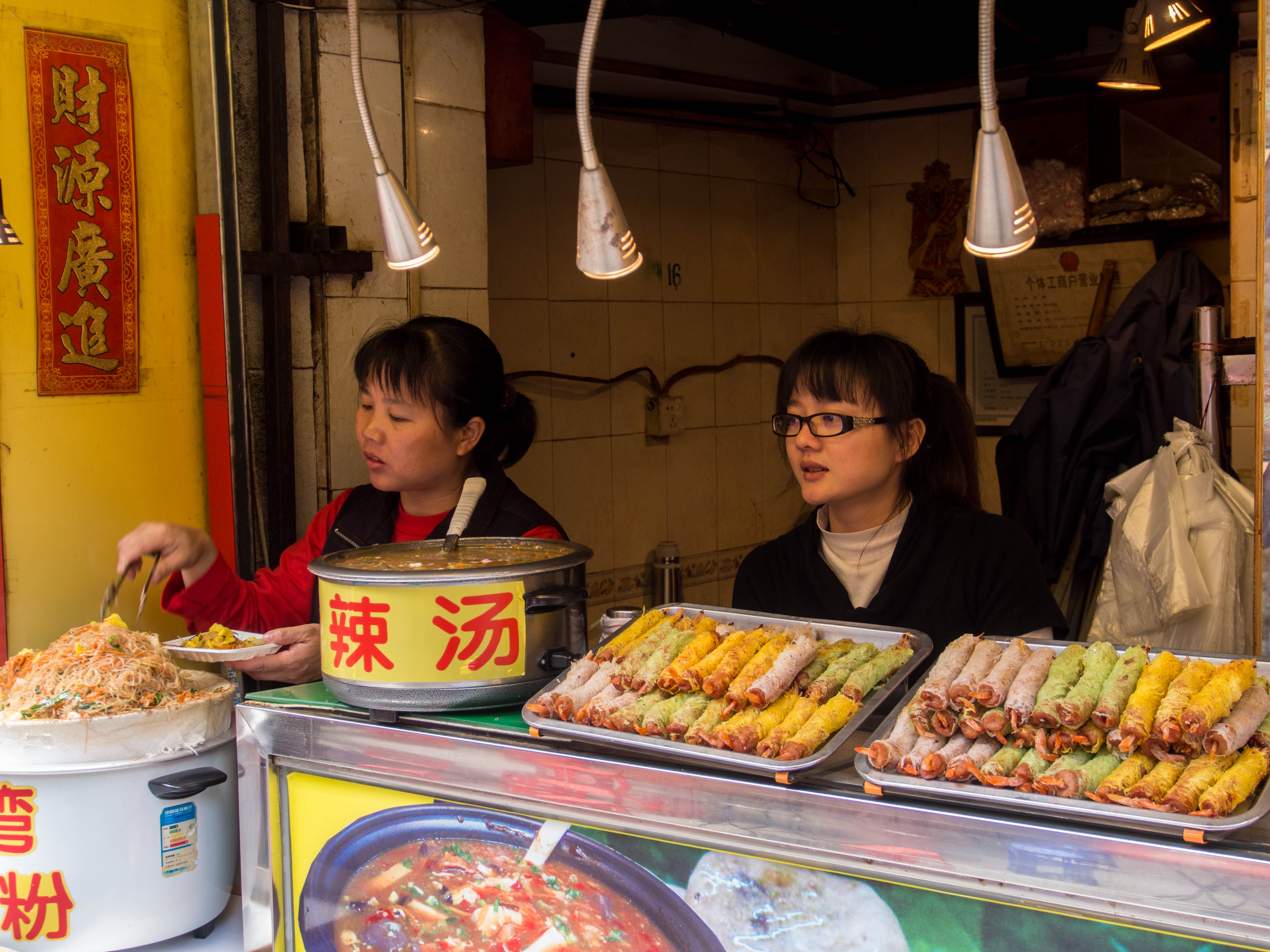 The number of restaurants in Guangzhou is staggering. Street food is also pretty serious business in Guangzhou as well. Busy pedestrian malls, night markets, near bus and train stations, and shopping areas are packed with vendors selling snacks from their carts. The streets are lined with countless small shops selling everything from milk tea to ice cream. And everyone is eating.